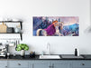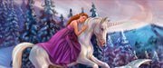 Mädchen reitet auf Einhorn im Winter, Glasbild Panorama