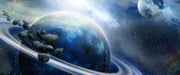 Planeten Meteoriten im Weltall, Glasbild Panorama