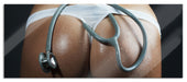 Frauenpo mit Stethoskop, Glasbild Panorama