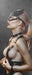 Sexy Blondine in Leder im Rotlicht B&W Detail, Glasbild Panorama