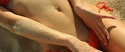 Sexy Frau im Bikini am Strand, Glasbild Panorama