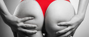 sexy Frauenpo in rotem String, Glasbild Panorama