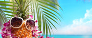 Ananas mit Sonnenbrille, Glasbild Panorama