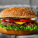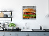 appetitlicher Cheeseburger, Glasbild Quadratisch