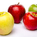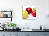 Bunte Äpfel schwarzer Hintergrund, Glasbild Quadratisch
