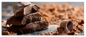 Dunkle Schokoladenraspeln, Glasbild Panorama