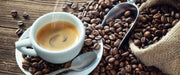Espressotasse mit Kaffeebohnen, Glasbild Panorama