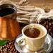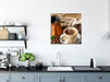 Frisch Kaffee mit Kaffeebohnen, Glasbild Quadratisch