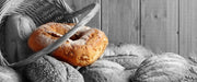 frische Brötchen in Korb, Glasbild Panorama