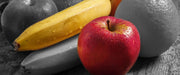 Frisches Obst auf Holztisch, Glasbild Panorama