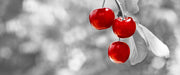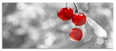 glänzende Kirschen am Zweig, Glasbild Panorama