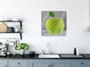 Grüner leckerer Apfel im Wasser, Glasbild Quadratisch