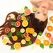 Hübsche Frau mit Obstscheiben, Glasbild Quadratisch