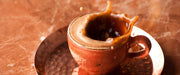 Kaffee spritzt aus Tasse, Glasbild Panorama