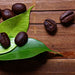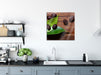 Kaffeebohnen auf Blättern, Glasbild Quadratisch