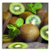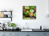 Kiwis auf Holztisch, Glasbild Quadratisch