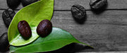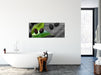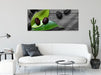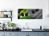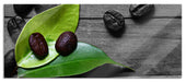 kleine Kaffeebohnen auf Blättern, Glasbild Panorama