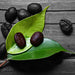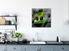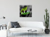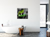 kleine Kaffeebohnen auf Blättern, Glasbild Quadratisch