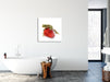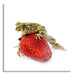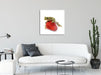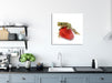 Kleiner Frosch sitzt auf Erdbeere, Glasbild Quadratisch