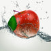 Köstlicher Apfel fällt ins Wasser, Glasbild Quadratisch