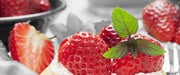 Köstliches Erdbeertörtchen, Glasbild Panorama