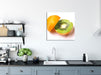 Leckere Kiwi mit Orangenschale, Glasbild Quadratisch