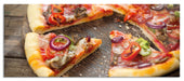 Leckere Pizza auf Holztisch, Glasbild Panorama