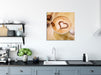 Leckerer Cappucino mit Herz, Glasbild Quadratisch