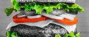 leckerer Hamburger mit Zwiebeln, Glasbild Panorama