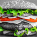 leckerer Hamburger mit Zwiebeln, Glasbild Quadratisch