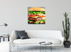 leckerer Hamburger mit Zwiebeln, Glasbild Quadratisch