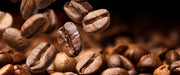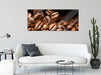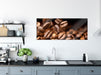 Nahaufnahme fallende Kaffeebohnen, Glasbild Panorama