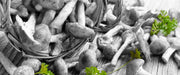 Pilzsammlung im Körbchen, Glasbild Panorama