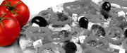 Pizza mit Oliven und Hirtenkäse, Glasbild Panorama