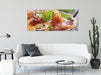 Pizza mit Schinken und Pilzen, Glasbild Panorama