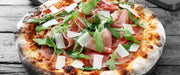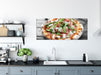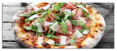 Prosciutto Pizza auf Holztisch, Glasbild Panorama