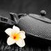 Teekanne mit Jasminblüte, Glasbild Quadratisch