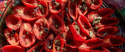Tomaten Olivenöl Kräuter, Glasbild Panorama