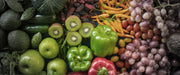 Verschiedene bunte Früchte von oben B&W Detail, Glasbild Panorama