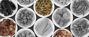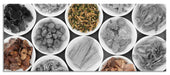 zahlreiche Gewürze in Schälchen, Glasbild Panorama