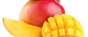 Zuckersüße aufgeschnittene Mango, Glasbild Panorama