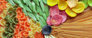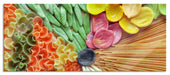 Zusammenstellung von bunten Nudeln, Glasbild Panorama