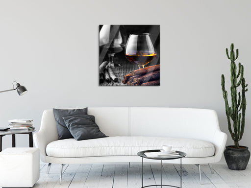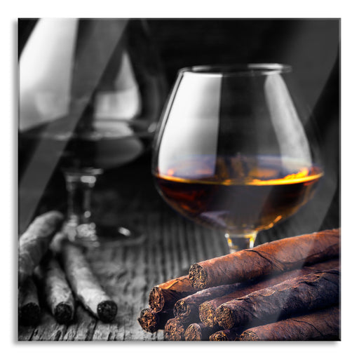 Original Preis34,95 €Whisky mit Zigarren auf Holztisch, Glasbild Quadratisch