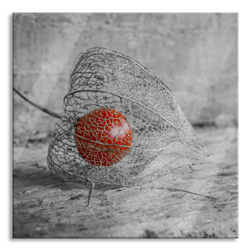 Original Preis34,95 €leckere Physalis in Schale, Glasbild Quadratisch
