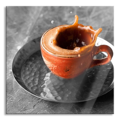Original Preis34,95 €Stück Zucker fällt in Kaffee, Glasbild Quadratisch