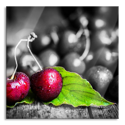 Original Preis34,95 €Tautropfen auf Kirschen, Glasbild Quadratisch