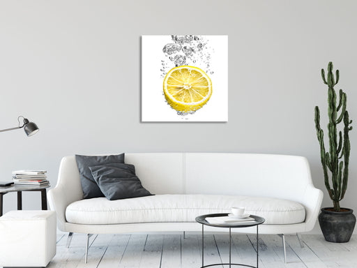 Original Preis34,95 €ins Wasser gefallene Zitrone, Glasbild Quadratisch