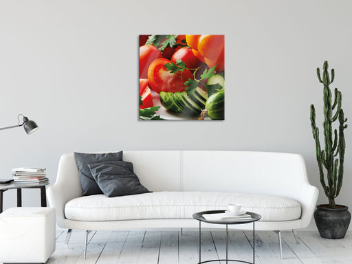 Original Preis34,95 €Obst Gemüse Gurke Tomaten, Glasbild Quadratisch