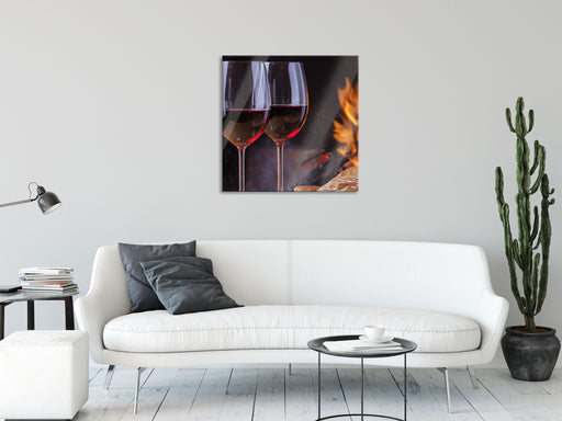 Original Preis34,95 €Wein in Gläsern am Meer, Glasbild Quadratisch