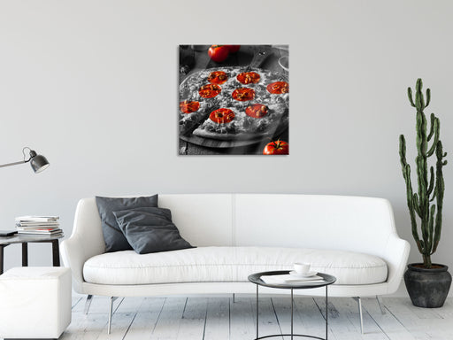 Original Preis34,95 €Salamipizza frisch aus dem Ofen, Glasbild Quadratisch